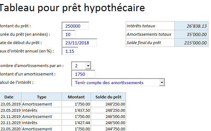 Ainsi, en choisissant ce prêt hypothécaire, nous avons à payer 93 750 € d’intérêts au total sur 25 ans. Ce chiffre devient essentiel pour notre planification financière. Nous pouvons utiliser ce calcul pour comparer différents prêts et affiner nos choix.