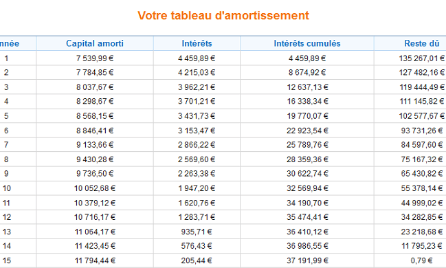 - Tableau amortissement : Cette application montre le détail des remboursements sur toute la durée du prêt.