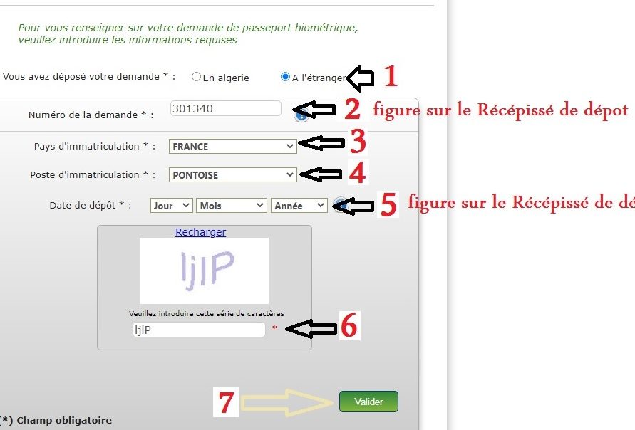 - Récépissé de demande : Il contient le numéro de référence.