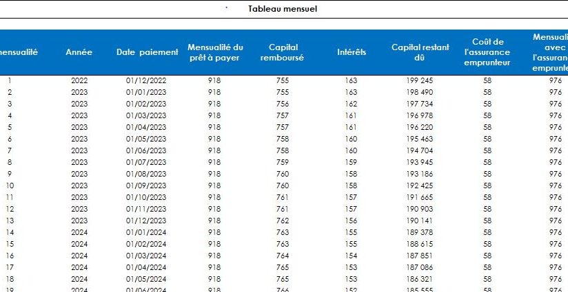 En prenant le temps d’analyser ce tableau, on peut mieux anticiper nos besoins financiers et ajuster notre budget en conséquence. Que ce soit pour un prêt immobilier ou à la consommation, cet outil nous aide à faire des choix éclairés et à rester en contrôle de nos finances. Adoptons-le pour optimiser notre trajectoire financière.