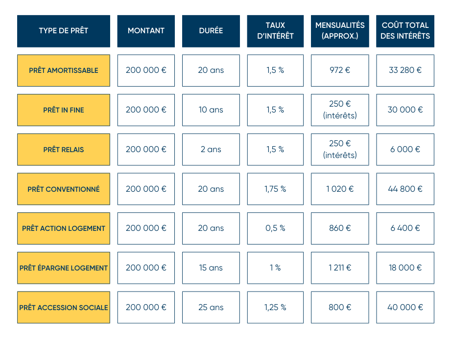 Nous allons explorer les différents types de prêts immobiliers disponibles. Chacun présente des caractéristiques spécifiques qui peuvent influencer notre choix selon nos besoins financiers.