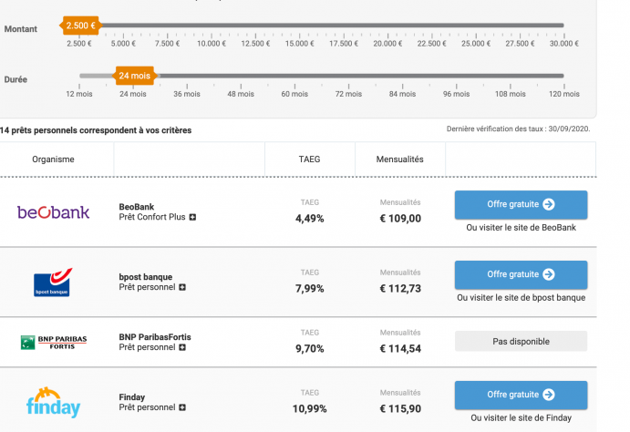 - 30 mois : Pour un prêt de 25 000 euros à un taux de 2 %, la mensualité atteindrait environ 850 euros.
