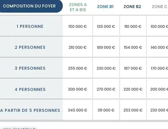 - Zones B2 et C : Les limites baissent respectivement à environ 70 000 euros et 60 000 euros.